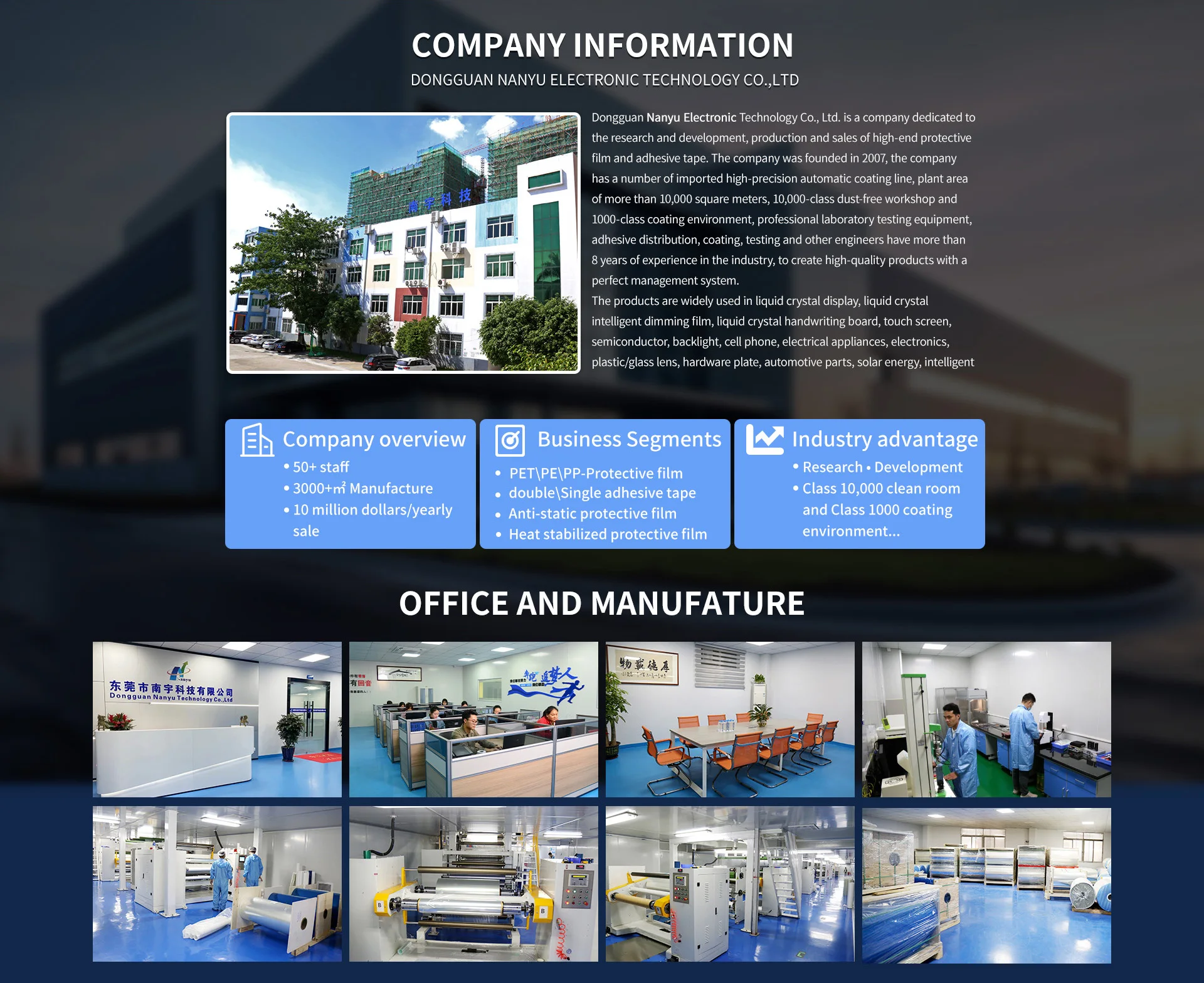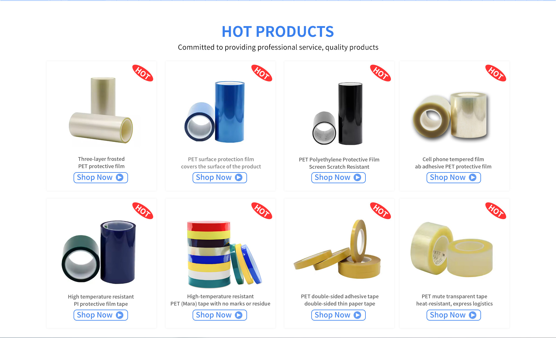Productos principales:Película protectora, cinta adhesiva, película protectora industrial, cinta electrónica, película protectora resistente a altas temperaturas